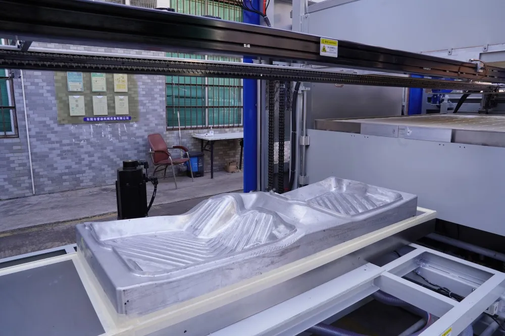 Vacuum Forming Machine for TPE Car Foot Mats/Tailgate Mats(Automatic) for floor mats, specialising in the production of TPE automotive floor mats and TPE boot liners. Customised to fit various vehicle models, featuring one-piece moulding and high conformability, supporting large-scale mass production.